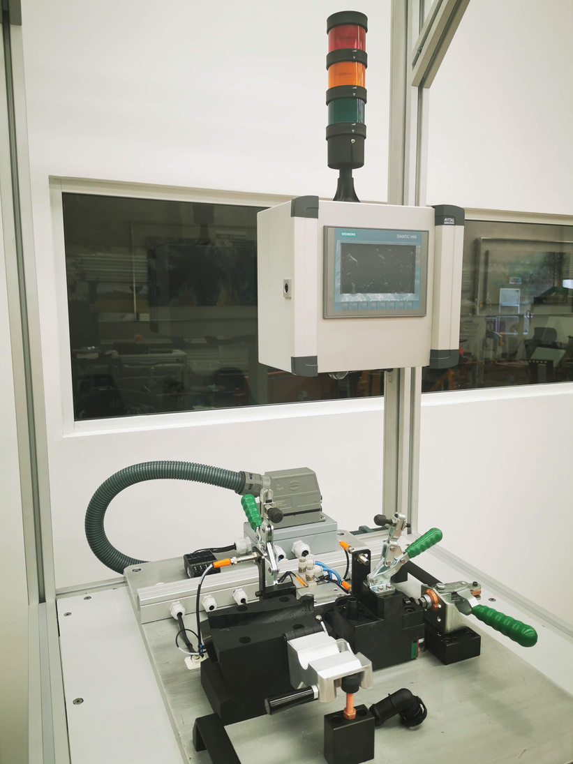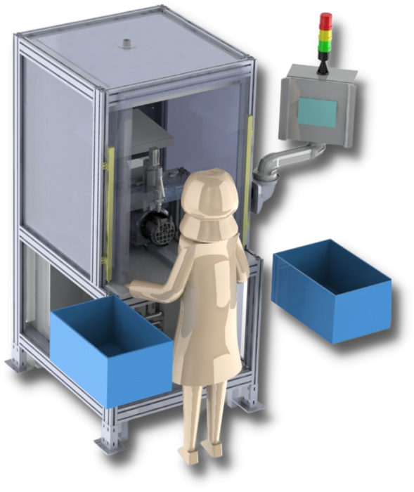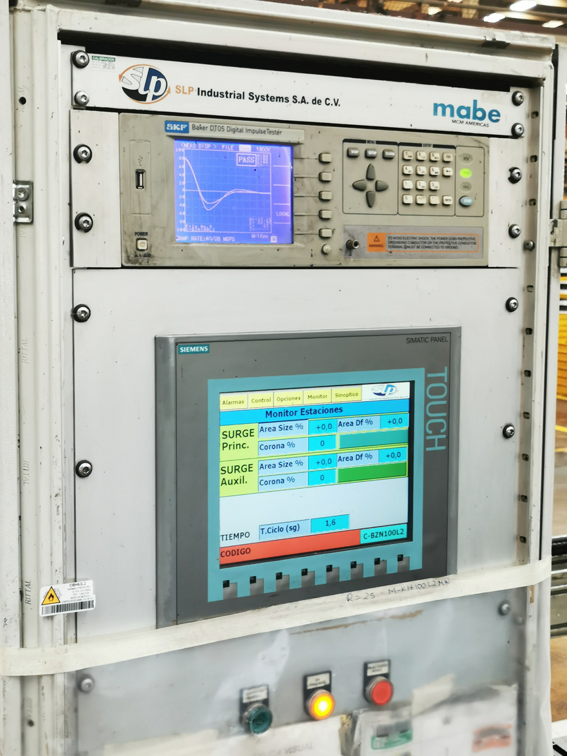 Estación de prueba de motores, puede estar ubicada al final de la línea de bobinado (estatores) o bien al final de la línea de fabricación (motor montado).